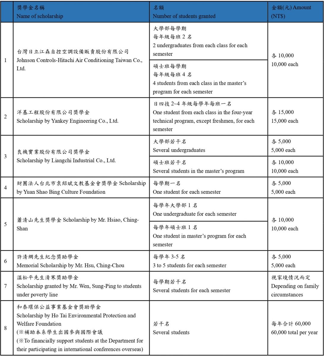 Department of Refrigeration,Air-conditioning and Energy Engineering Department scholarships