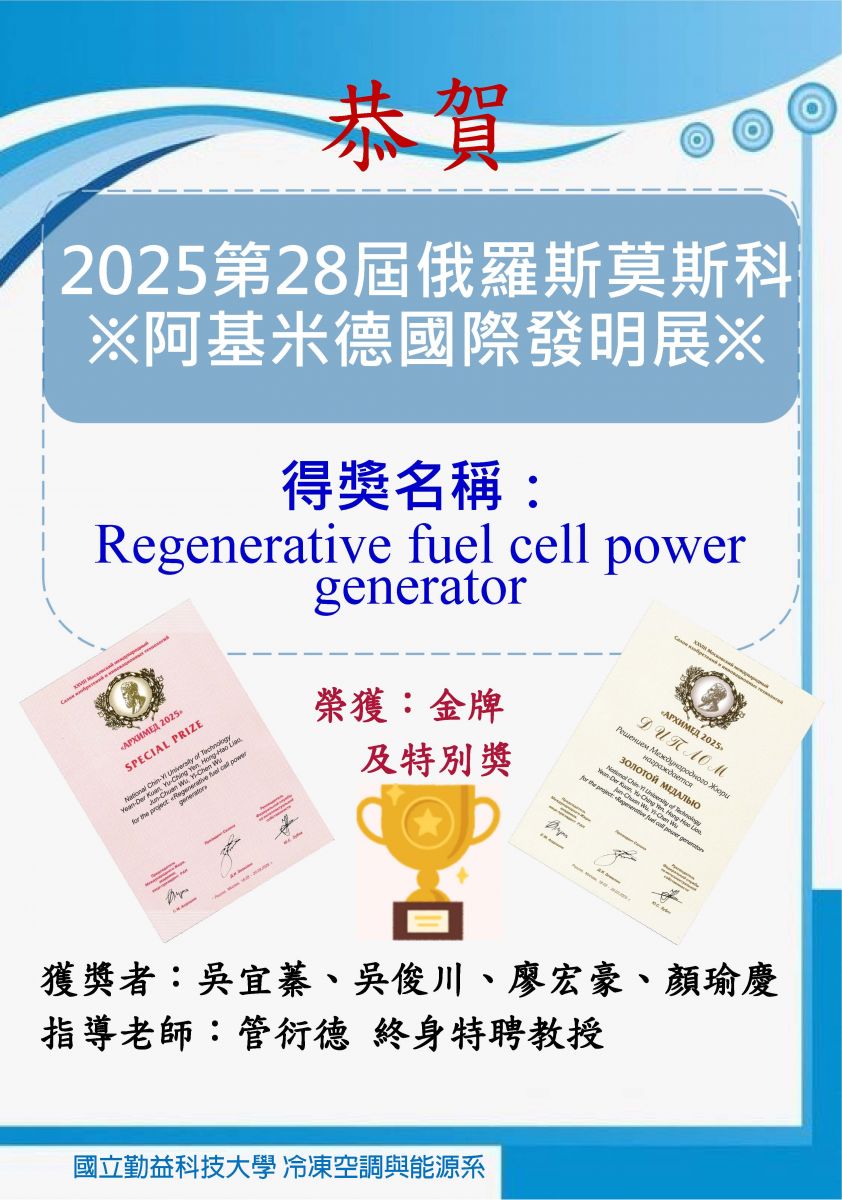 恭賀 管衍德老師榮獲2025第二十八屆俄羅斯阿基米德國際發明展金牌及特別獎