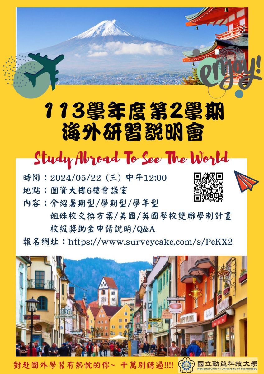 對於增強外語能力,有興趣出國交換的學生們~請把握機會報名~